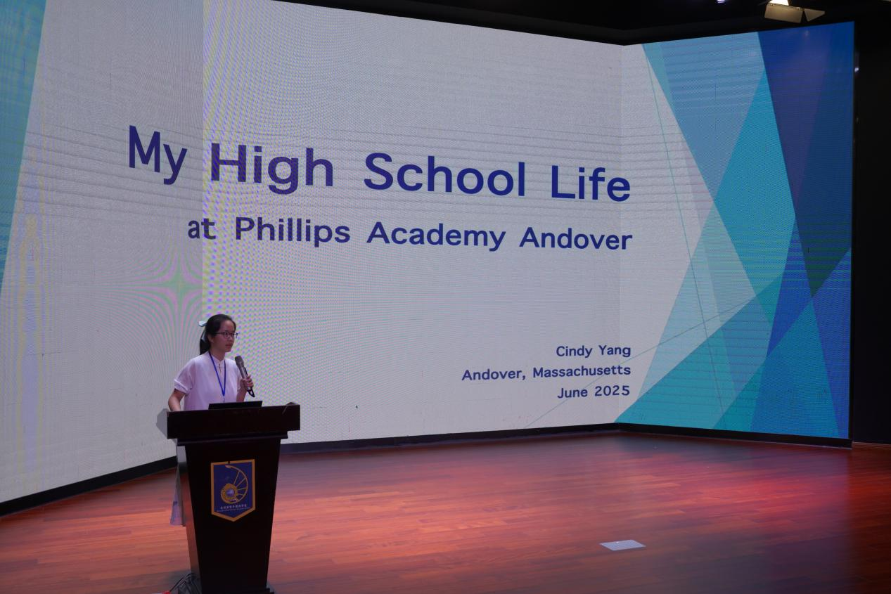 On June 19, participants visited Hangzhou International School, where Principal Gong Yaodong and foreign teacher Chris orchestrated meaningful exchanges with Chinese students. The morning session featured presentations on "A Day in the Life of Chinese and American Students." Siyu Yang from Phillips Academy Andover shared insights about her prestigious institution, founded in 1778, which currently enrolls 1,165 students from 46 countries and territories, offering 312 course options.